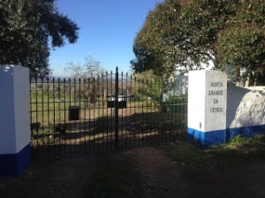 Continuar em frente até chegar a um aglomerado de casas. Existe um caminho que corta à esquerda, não tomar este caminho. Continuar em frente e contornar as casas até verem um portão no qual está escrito “Horta Grande da Cerca”. É ai.
